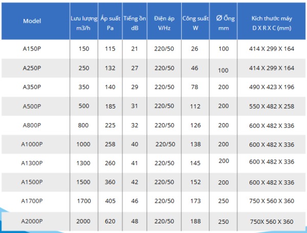 150 m³/h 1–2 phòng ngủ (dưới 5 người)