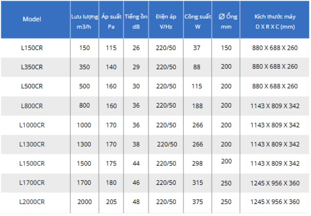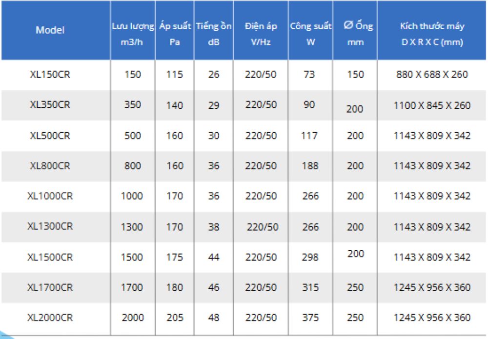 150 m³/h 1–2 phòng ngủ (gia đình dưới 5 người)