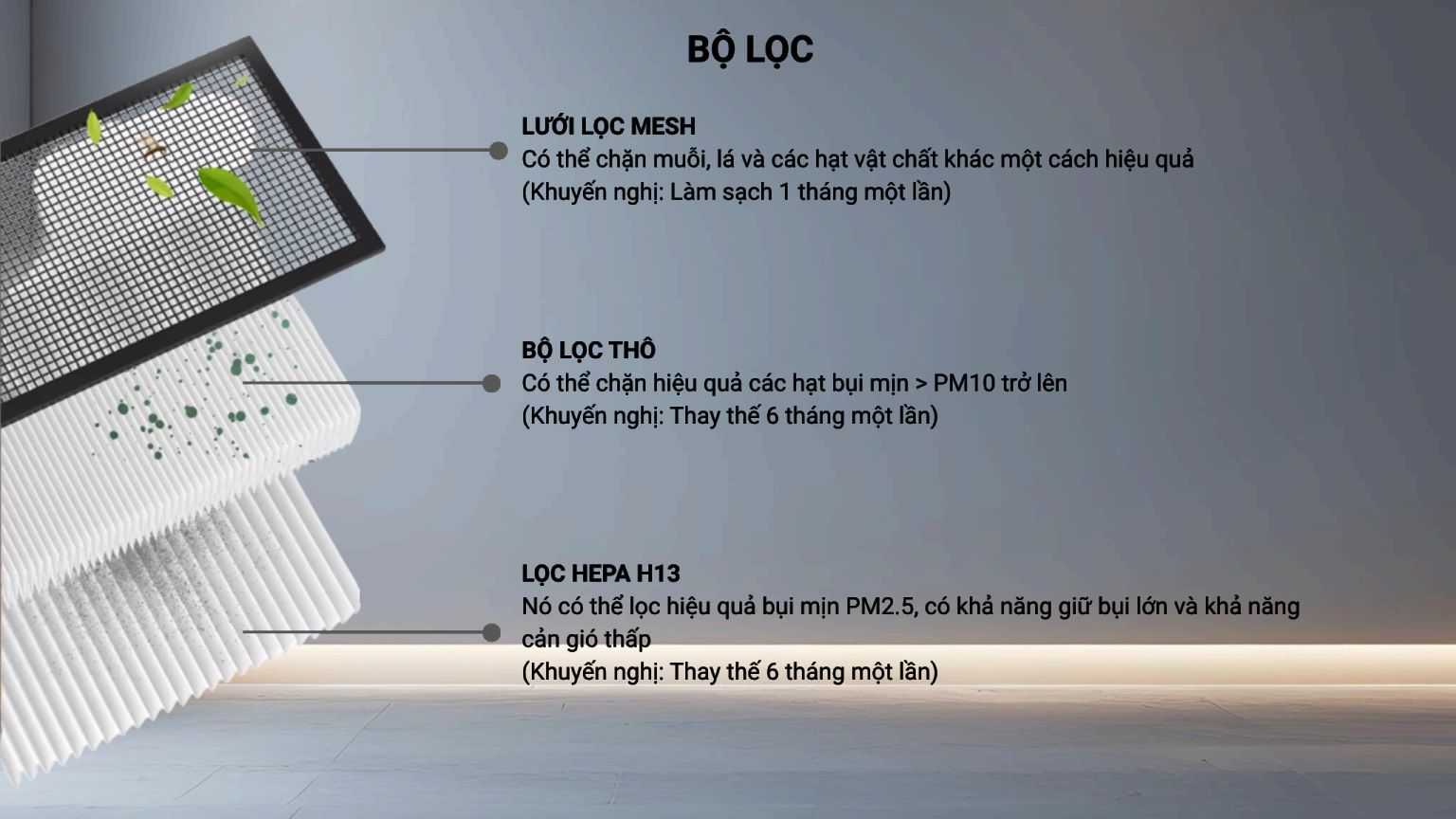 Đặc biệt trong các khu vực có thời tiết thất thường hoặc môi trường ẩm ướt, hệ thống giúp giữ không gian luôn khô thoáng, bảo vệ nội thất và đồ đạc không bị ảnh hưởng bởi ẩm mốc.
