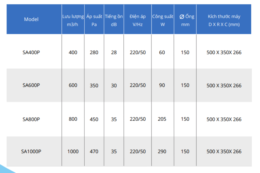 Lưu lượng gió từ 400 – 1000 m³/h, đáp ứng nhu cầu của phòng ngủ, phòng khách, văn phòng, phòng học,…