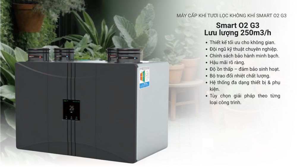 Máy Smart O2 G3 là sự lựa chọn hoàn hảo cho các phòng có diện tích 40m² – 50m², như phòng ngủ hoặc phòng khách. Máy cung cấp khí tươi sạch, giúp duy trì môi trường sống thoải mái, dễ chịu và tiết kiệm năng lượng. Đây là một giải pháp tuyệt vời cho các không gian không quá lớn nhưng cần đảm bảo không khí trong lành suốt cả ngày.